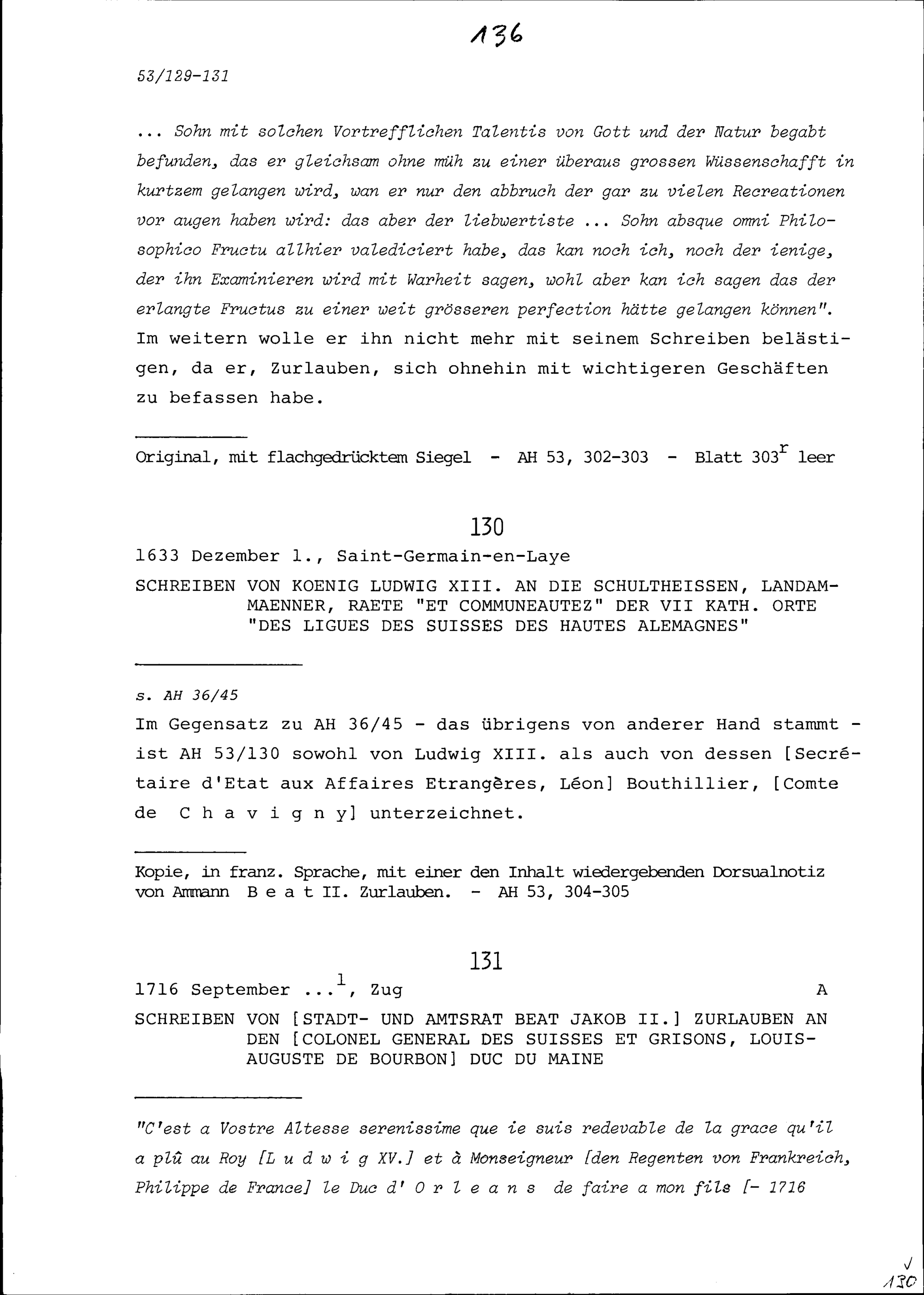 Schreiben von Ludwig XIII., König von Frankreich, an die Schultheissen, Landammänner, Räte und Gemeinden der Sieben Katholischen Orte