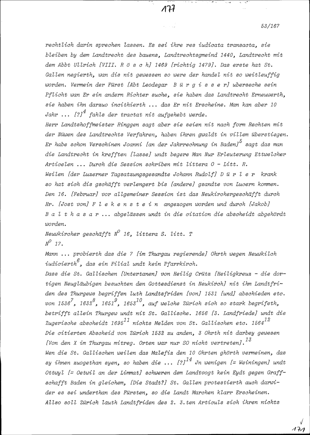 Notiz von Beat Jakob II. Zurlauben, Zuger Tagsatzungsgesandter, über die ausserordentliche...