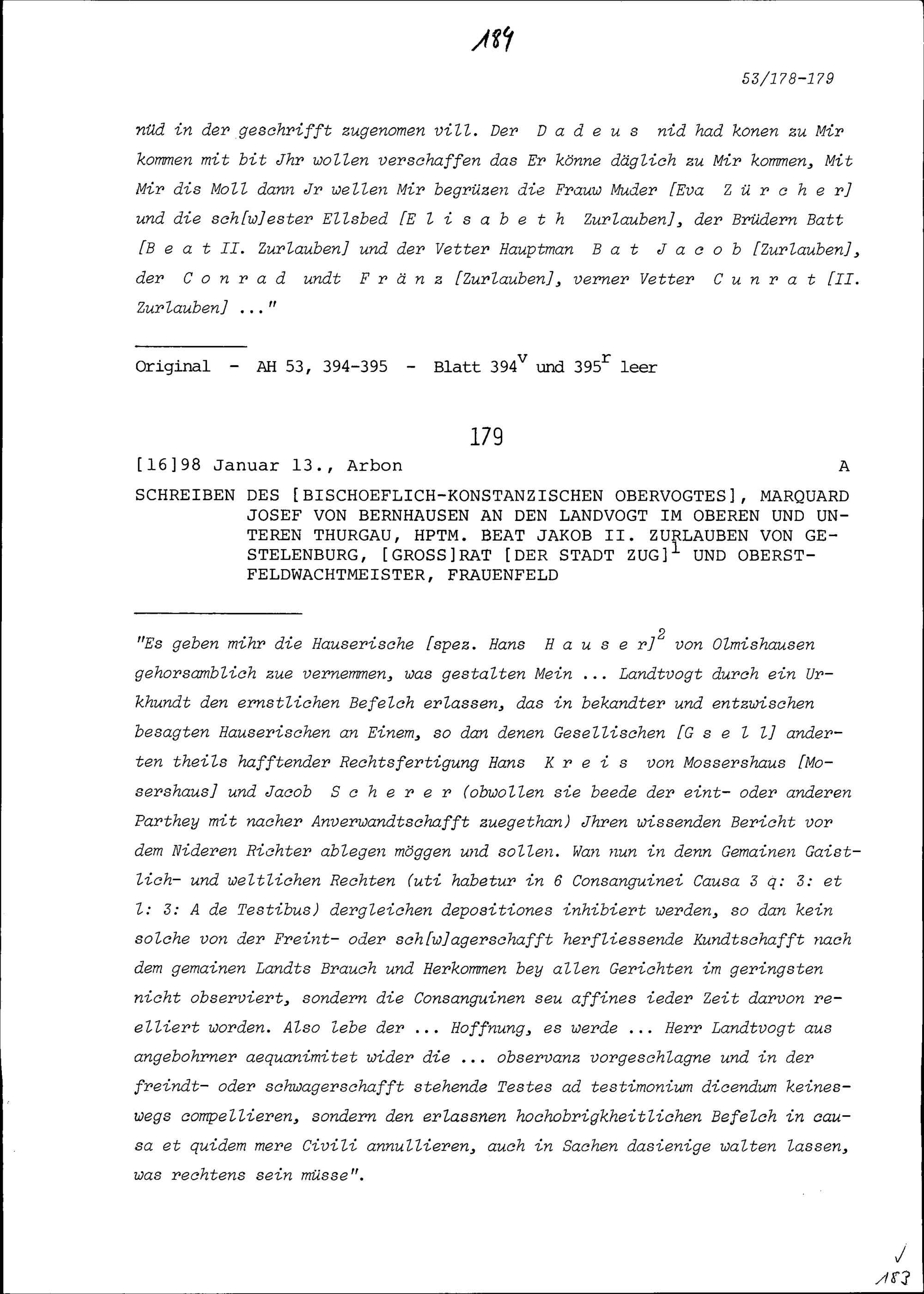 Schreiben von Marquard Josef von Bernhausen, bischöflich-konstanzischer Obervogt, an Beat Jakob II. Zurlauben, Landvogt im Oberen und Unteren Thurgau und Hauptmann, Frauenfeld
