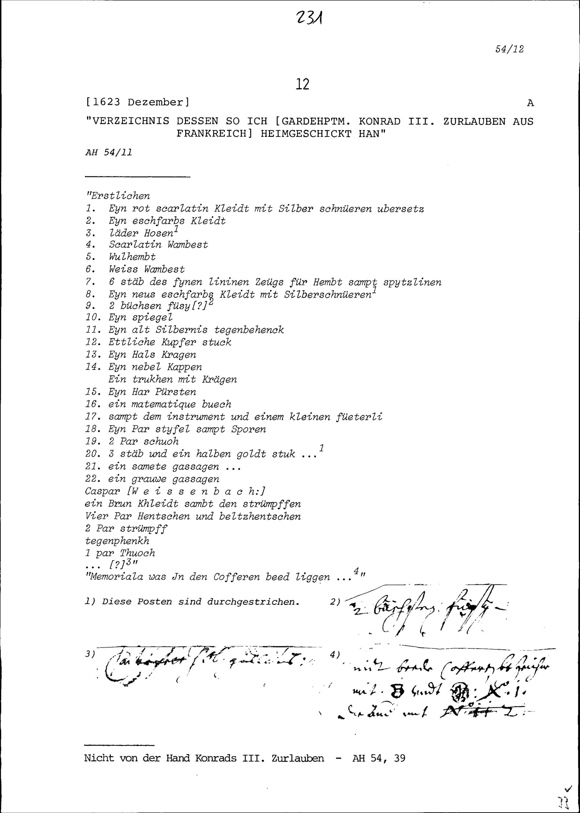 Utensilien und Kleider, die Konrad III. Zurlauben, Gardehauptmann, aus Frankreich...