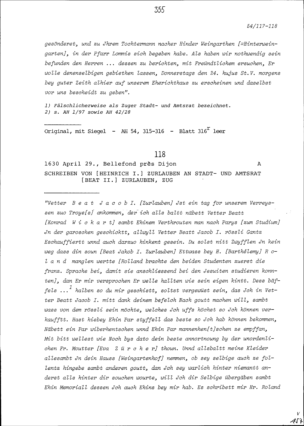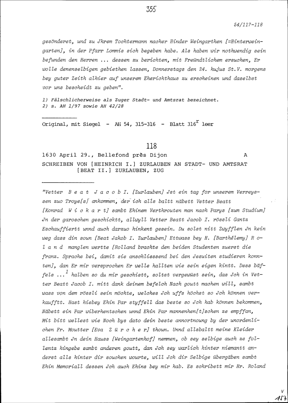 Schreiben von Heinrich I. Zurlauben an Beat II. Zurlauben, Stadt- und Amtrat, Zu...