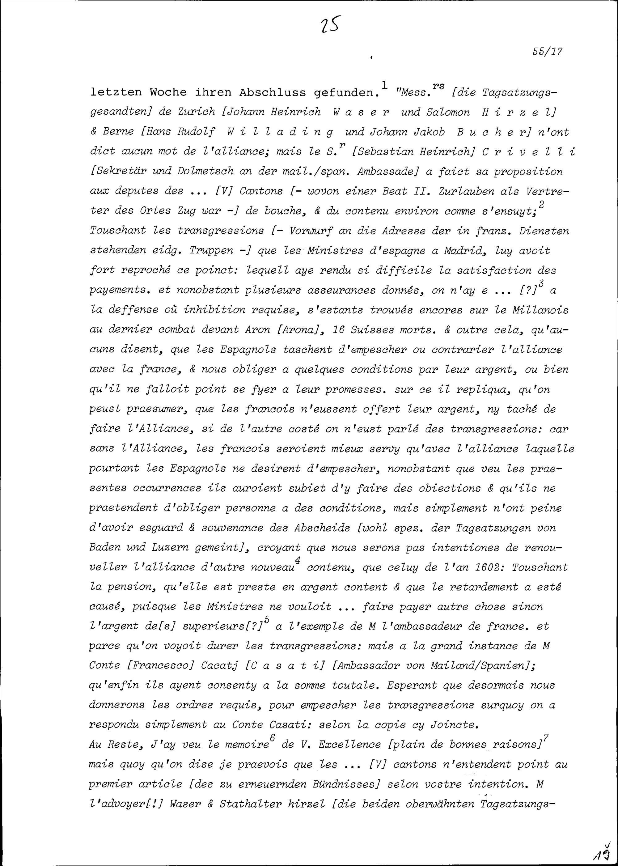 Schreiben von Beat II. Zurlauben, Stadt- und Amtrat Zug, an Jean de la Barde, Ambassador von Frankreich