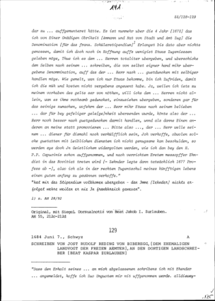 Schreiben von Jost Rudolf Reding von Biberegg, Altlandvogt der Freien Ämter, an Beat...
