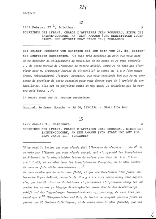Schreiben von Jean Rousseau, Sieur de Sainte-Colombe, französischer Geschäftsträger, an Beat Jakob II. Zurlauben, Altammann und Stadt- und Amtrat Zug