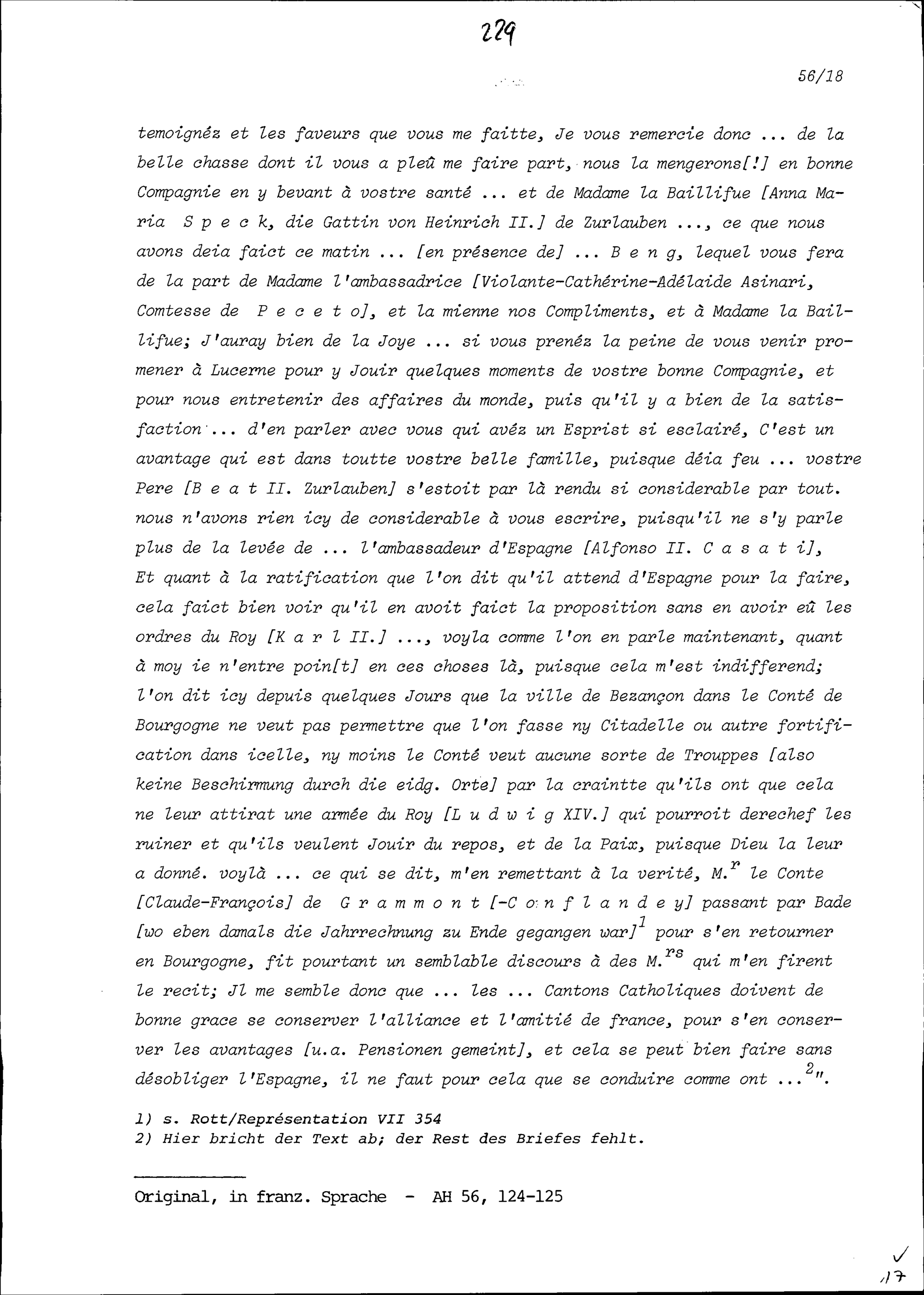 Schreiben von Benoît II. Cize, Baron de Grésy, Ambassador von Frankreich, an Heinrich II. Zurlauben
