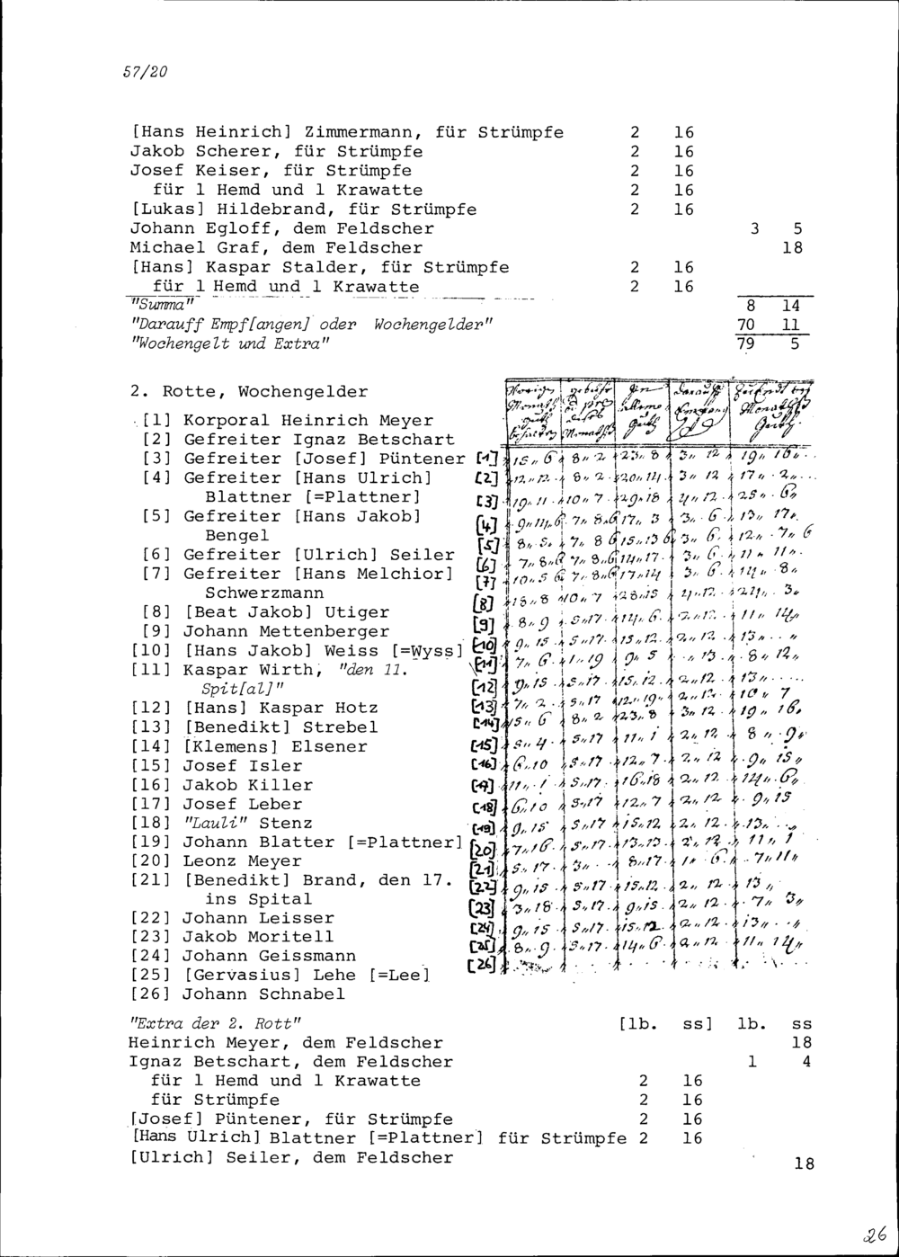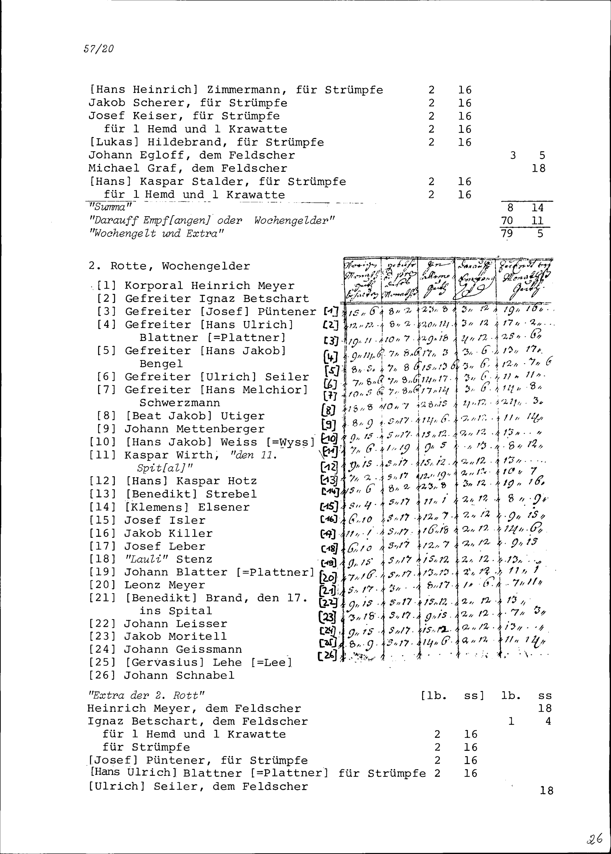 Mannschaftsrodel der Kompanie von Beat Jakob II. Zurlauben im Regiment Pfyffer, aufgezeichnet von Hans Kaspar Schreiber, Fähnrich
