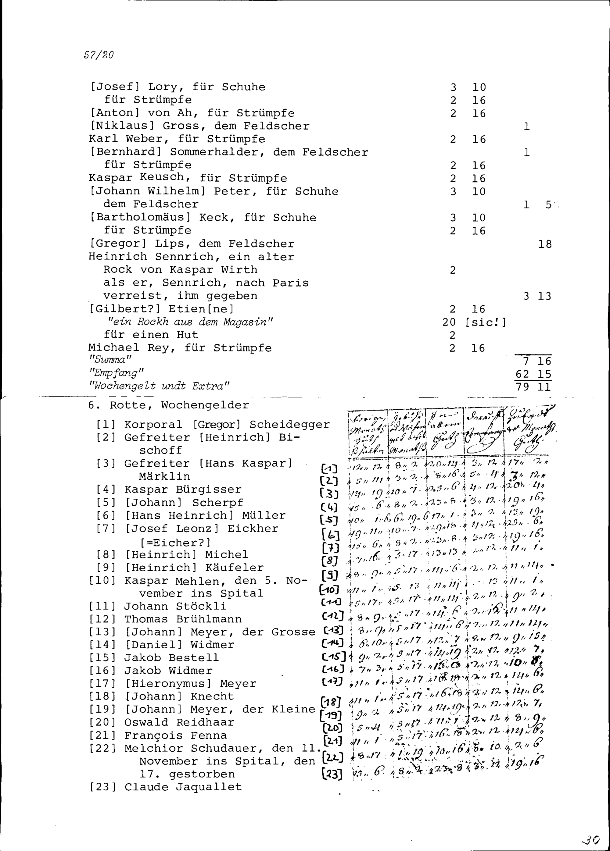Mannschaftsrodel der Kompanie von Beat Jakob II. Zurlauben im Regiment Pfyffer, aufgezeichnet von Hans Kaspar Schreiber, Fähnrich