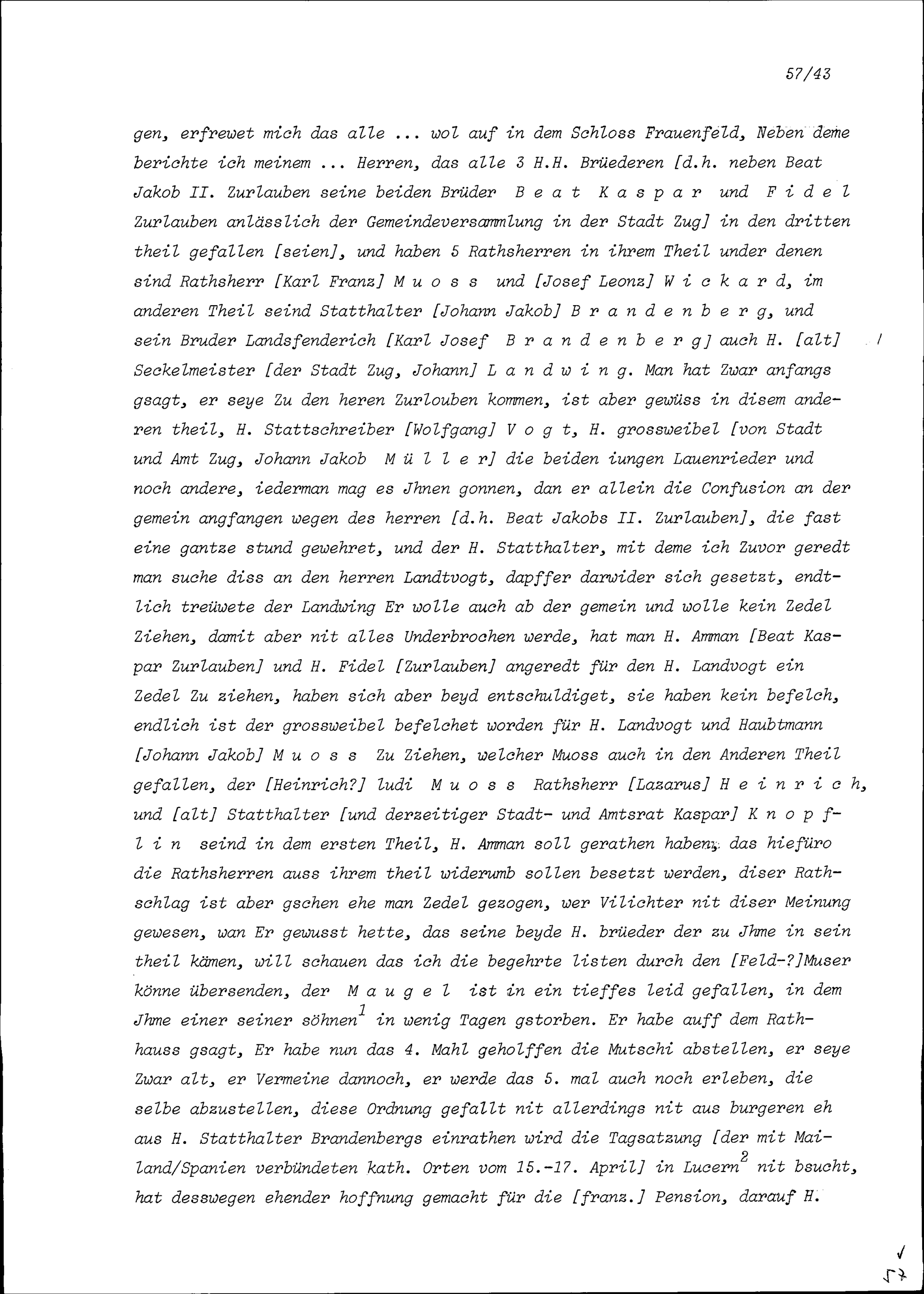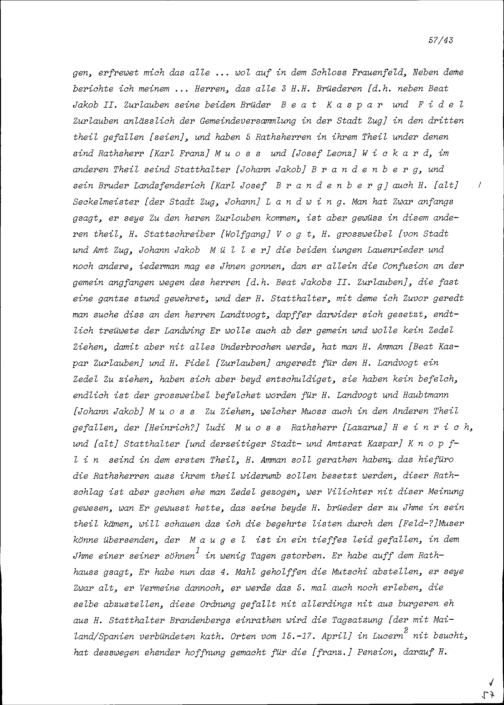 Schreiben von Peter Matthäus Herster, Kaplan der Sakraments- und Rosenkranzpfrund zu Sankt Oswald und ehemaliger Benefiziat an der Sankt Konradspfrund, an Beat Jakob II. Zurlauben, Landvogt im Thurgau und Hauptmann, Major von Stadt und Amt Zug, Frauenfeld
