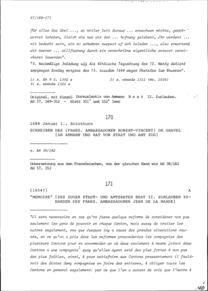 Schreiben von Robert-Vincent de Gravel, Ambassador von Frankreich, an Ammann und...