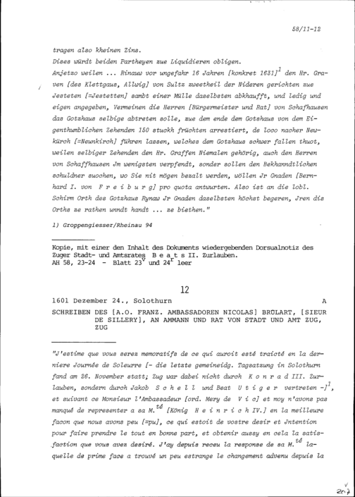 Schreiben von Nicolas Brûlart de Sillery, ausserordentlicher Ambassador von Frankreich, an Ammann und Rat von Stadt und Amt Zug, Zug