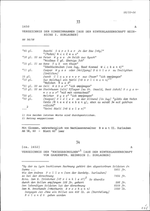 Zinseinnahmen aus der Hinterlassenschaft von Heinrich I. Zurlauben