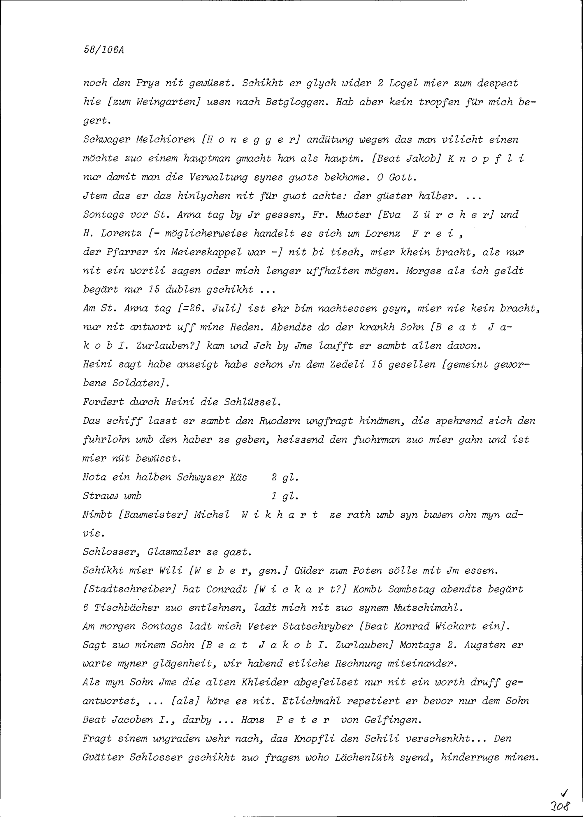 Notiz von Beat II. Zurlauben über Heinrich I. Zurlauben