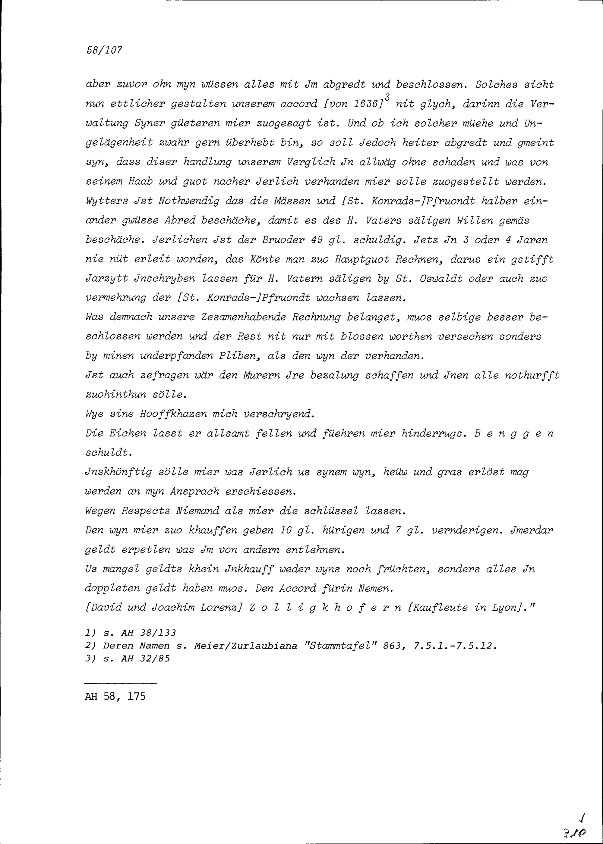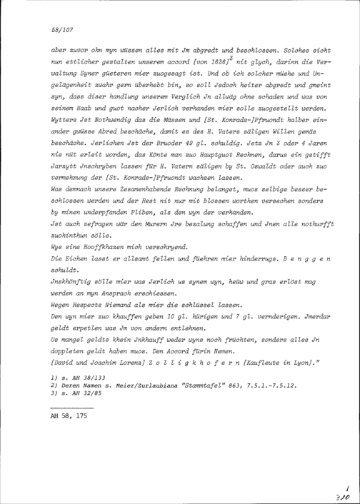Notiz von Beat II. Zurlauben über Heinrich I. Zurlauben