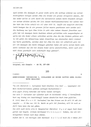 Anweisungen von Heinrich I. Zurlauben an Anna Elisabeth Wallier, seine Gattin