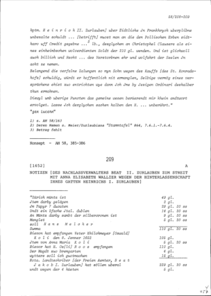 Notiz von Beat II. Zurlauben, Nachlassverwalter, zum Streit mit Anna Elisabeth Wallier wegen der Hinterlassenschaft Heinrich I. Zurlauben