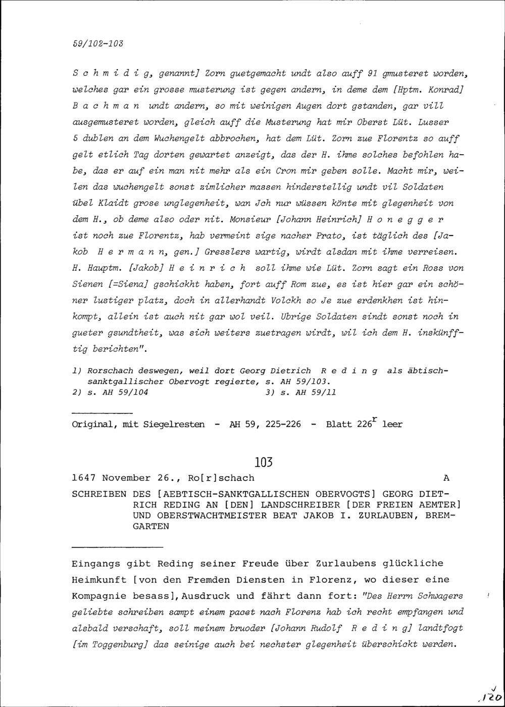 Schreiben von Georg Dietrich Reding, äbtisch-sankt-gallischer Obervogt, an Beat Jakob I. Zurlauben, Landschreiber der Freien Ämter und Oberstwachtmeister, Bremgarten