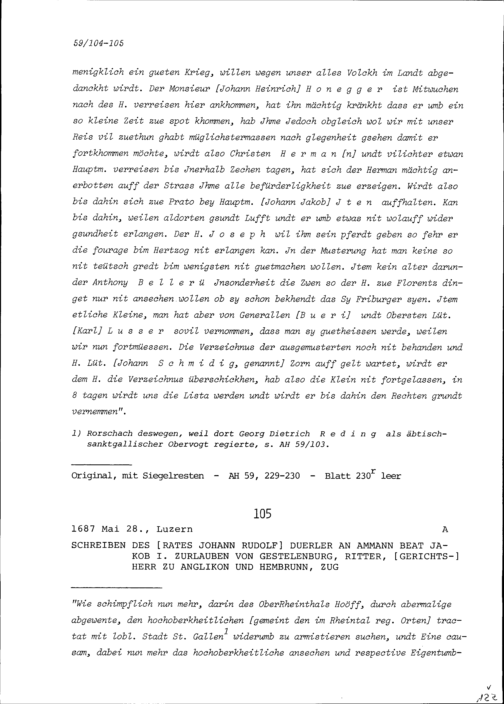 Schreiben von Johann Rudolf Dürler, Rat, an Beat Jakob I. Zurlauben, Ammann und Gerichtsherr...
