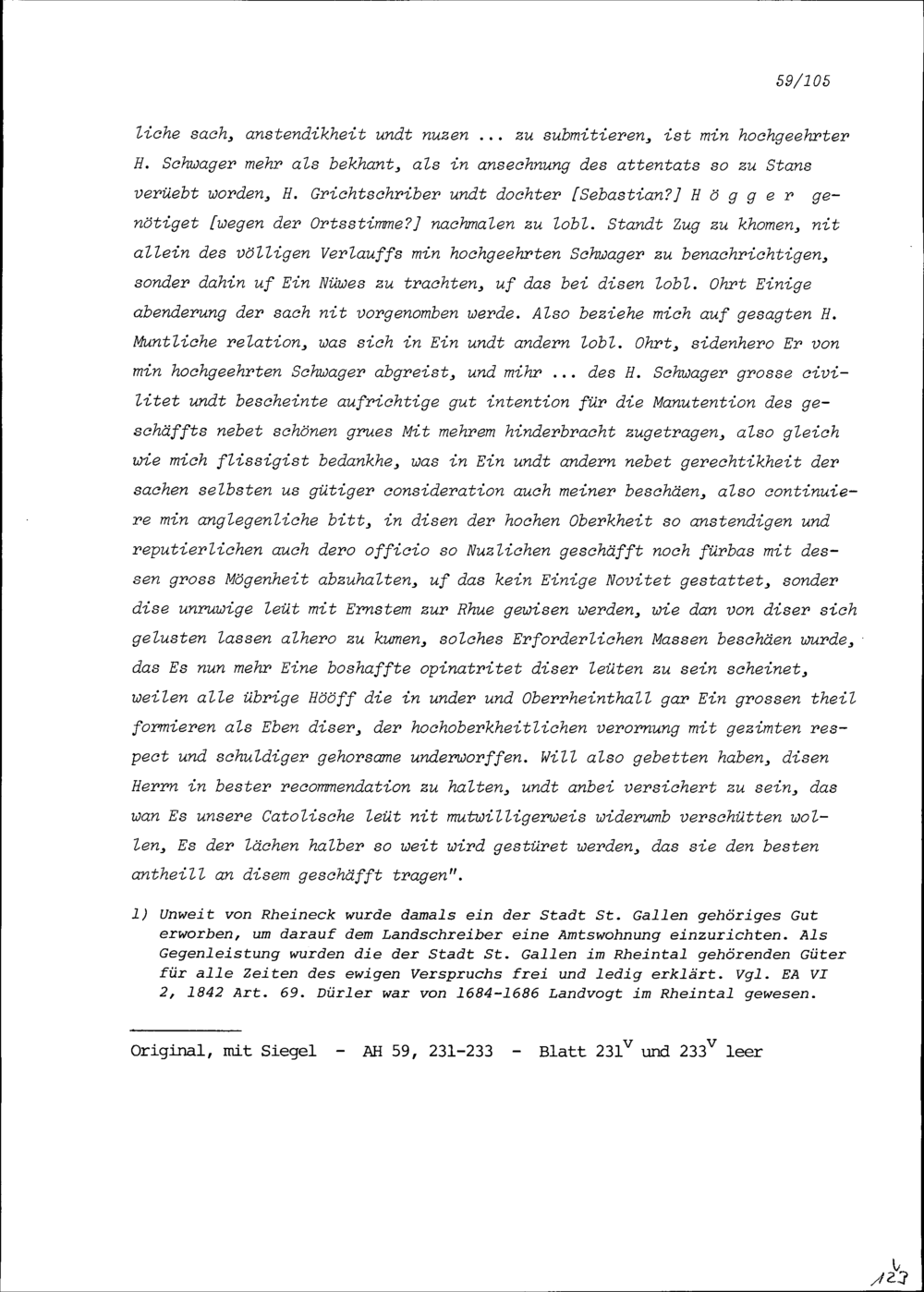 Schreiben von Johann Rudolf Dürler, Rat, an Beat Jakob I. Zurlauben, Ammann und Gerichtsherr zu Anglikon und Hembrunn, Zug