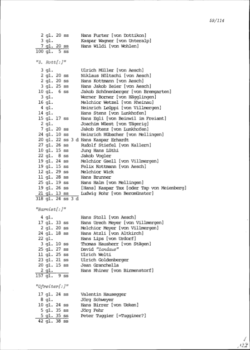 Abrechnung zwischen Beat Jakob I. Zurlauben, Hauptmann, und Johann Melchior Kolin, Leutnant, in Zusammenhang mit den Kosten für die Angehörigen der Kompanie Zurlauben im Regiment Lusser in florentinischen Diensten