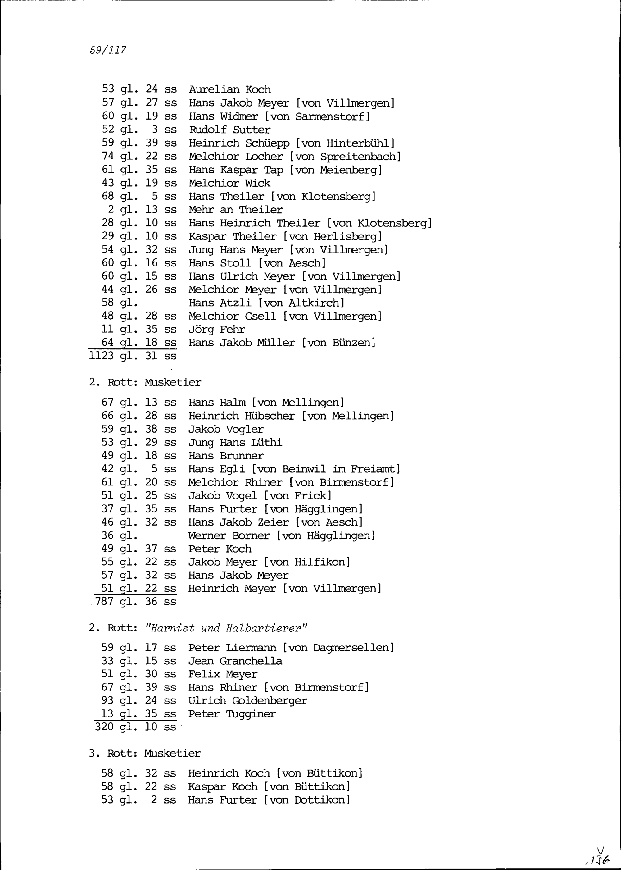 Ausgabenrechnung von Johann Melchior Kolin, Leutnant, und Beat Jakob I. Zurlauben für die Angehörigen der Kompanie Zurlauben