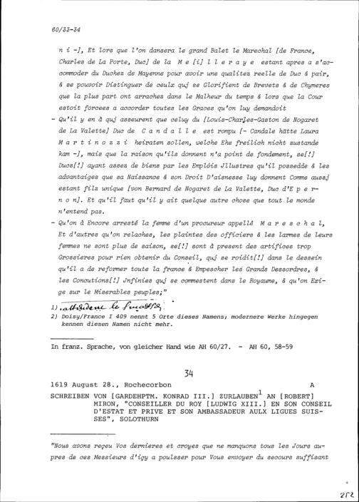 Schreiben von Konrad III. Zurlauben, Gardehauptmann, an Robert Miron, Ambassador von Frankreich, Solothurn