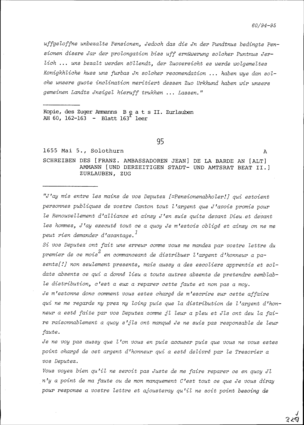 Schreiben von Jean de la Barde, Ambassador von Frankreich, an Beat II. Zurlauben,...