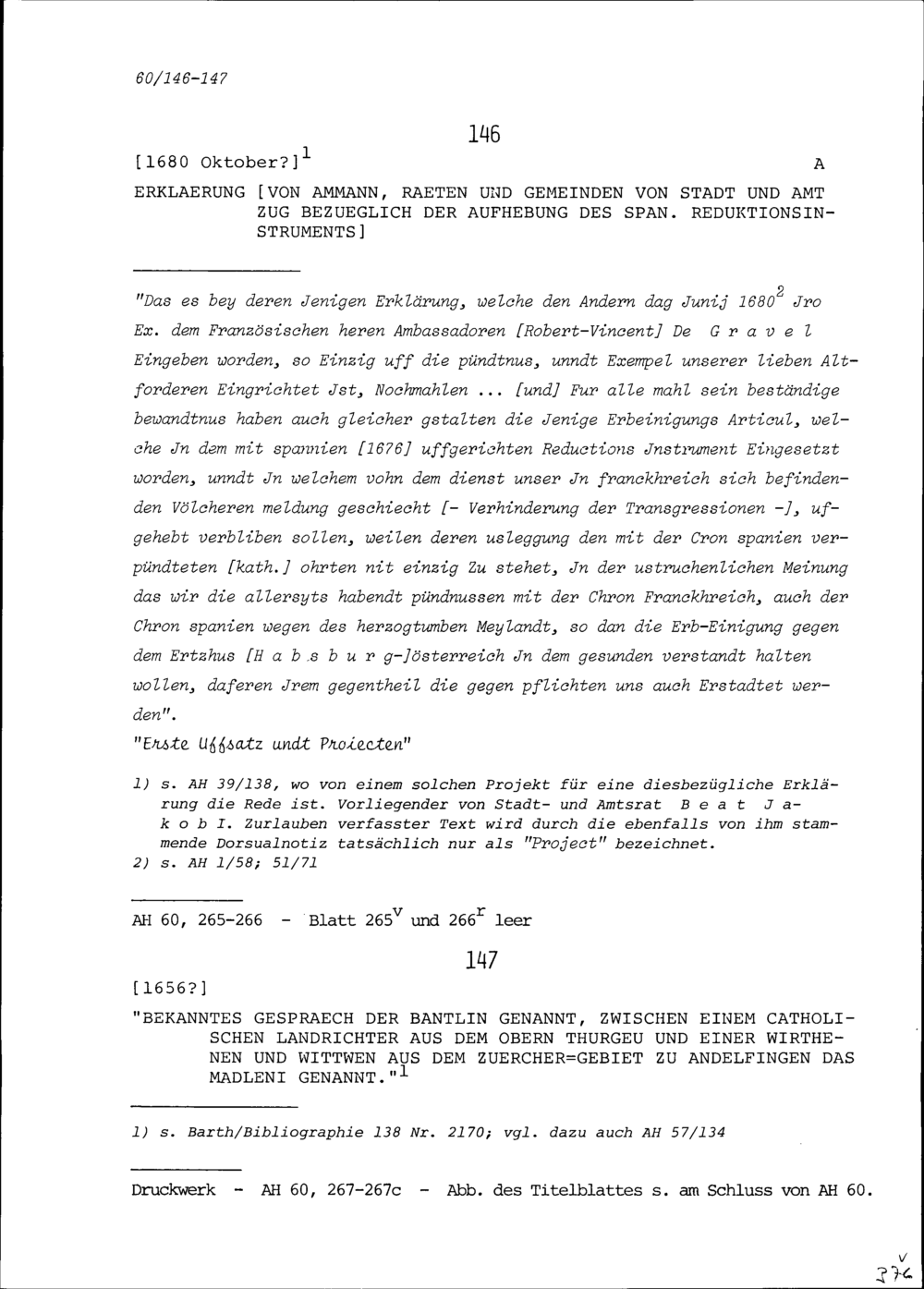 Erklärung des Ammanns, der Räte und der Gemeinden von Stadt und Amt Zug bezüglich der Aufhebung des spanischen Reduktionsinstruments