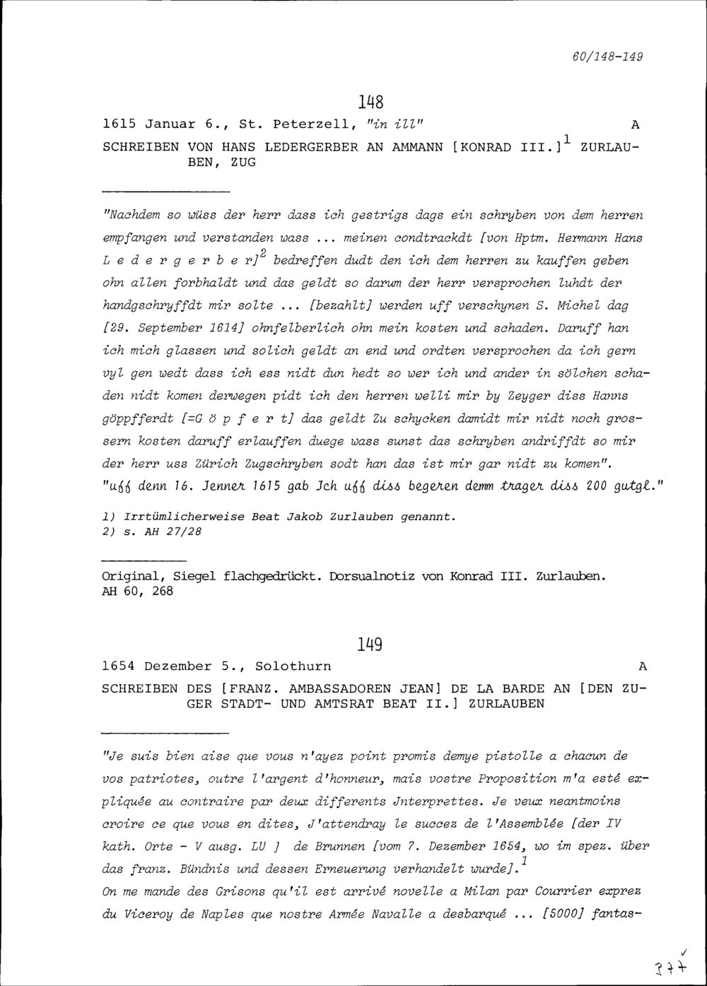 Schreiben von Hans Ledergerber an Konrad III. Zurlauben, Ammann, Zug