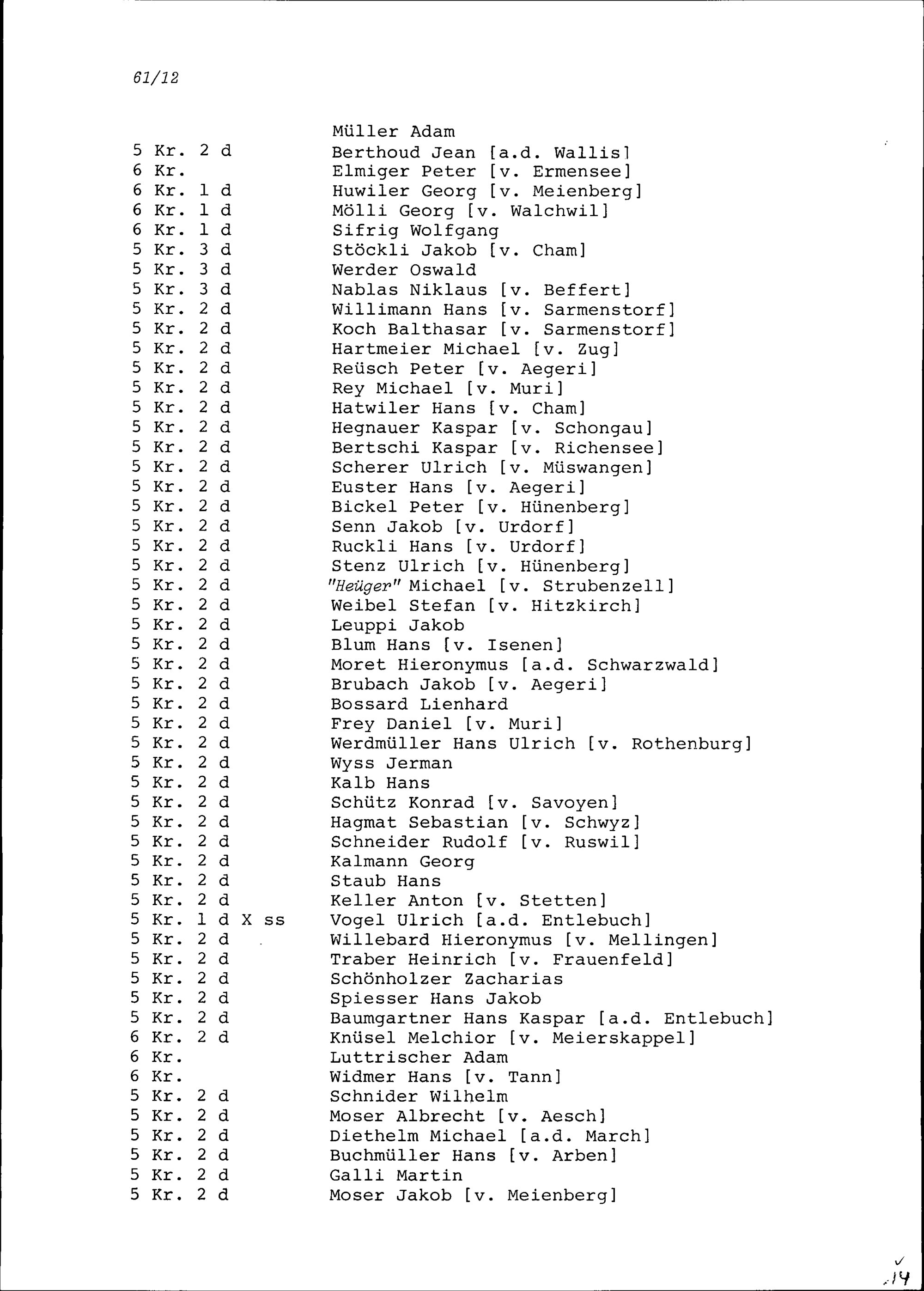 Schulden der Soldaten gegenüber Konrad III. Zurlauben, Gardehauptmann,