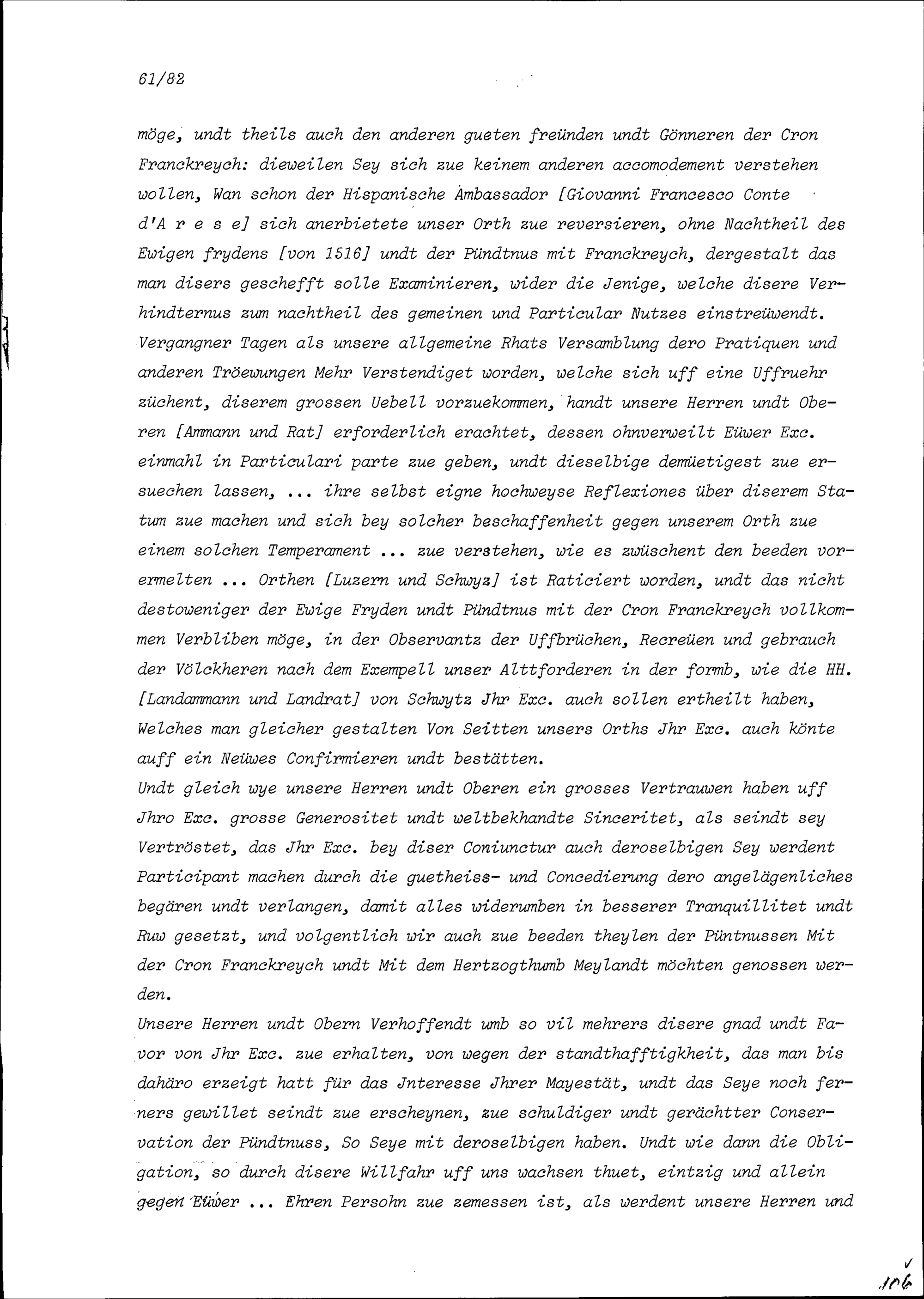 Schreiben von Beat Jakob I. Zurlauben, Altammann und Zuger Stadt- und Amtsrat, von Kaspar Knopfli, Statthalter und Zuger Stadt- und Amtsrat, von Oswald I. Kolin, Altratsseckelmeister und Zuger Stadt- und Amtsrat, von Paul Müller, Altlandvogt im Rheintal und Zuger Stadt- und Amtsrat und von Karl Moos, Zuger Stadt- und Amtsrat, an Robert-Vincent de Gravel, Ambassador von Frankreich