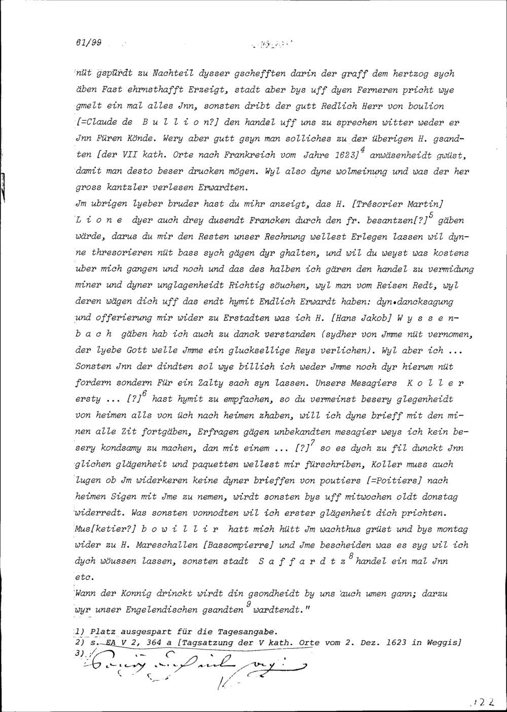 Schreiben von Heinrich Reding, Gardehauptmann, an Konrad III. Zurlauben, Altammann und Gardehauptmann, Poitiers