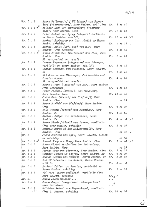Mannschaftsrodel der Kompanie von Konrad III. Zurlauben, Hauptmann, und Soldabrechnung samt Abzügen