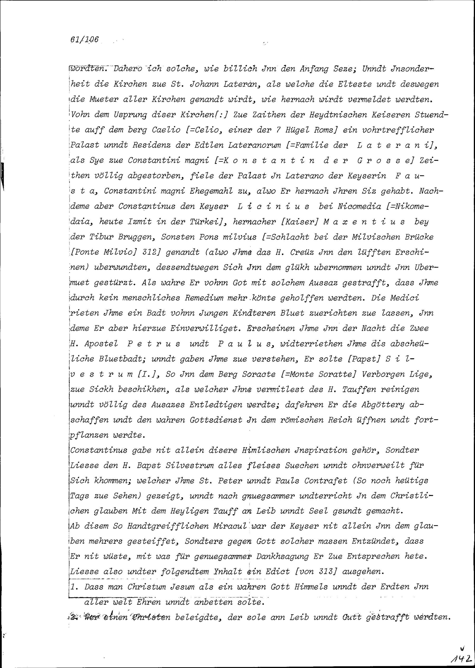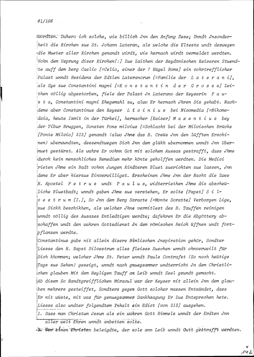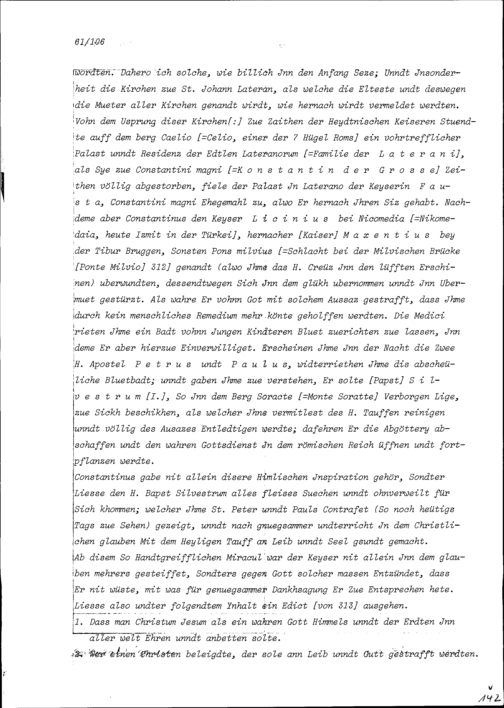 Beschreibung von Beat Kaspar Zurlauben über die anlässlich seiner Romreise besuchten Kirchen und andern Sehenswürdigkeiten