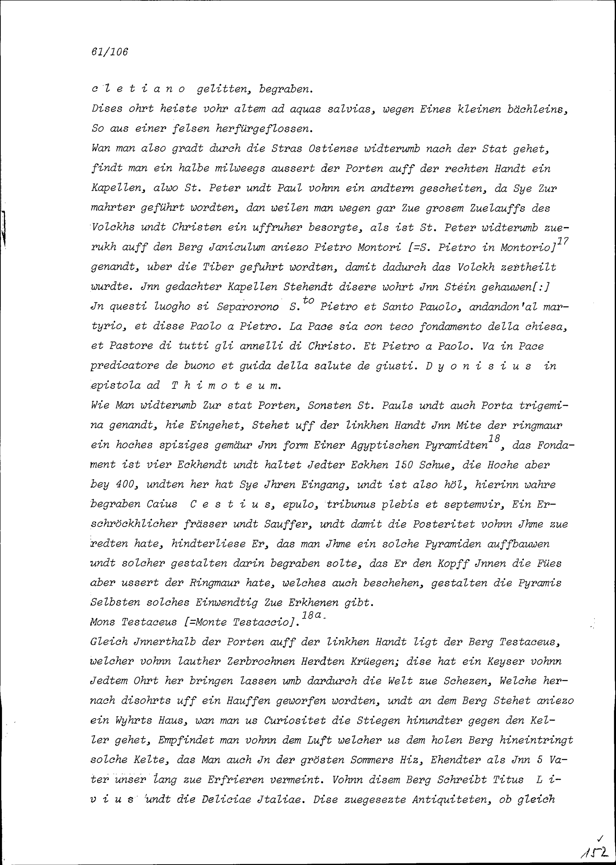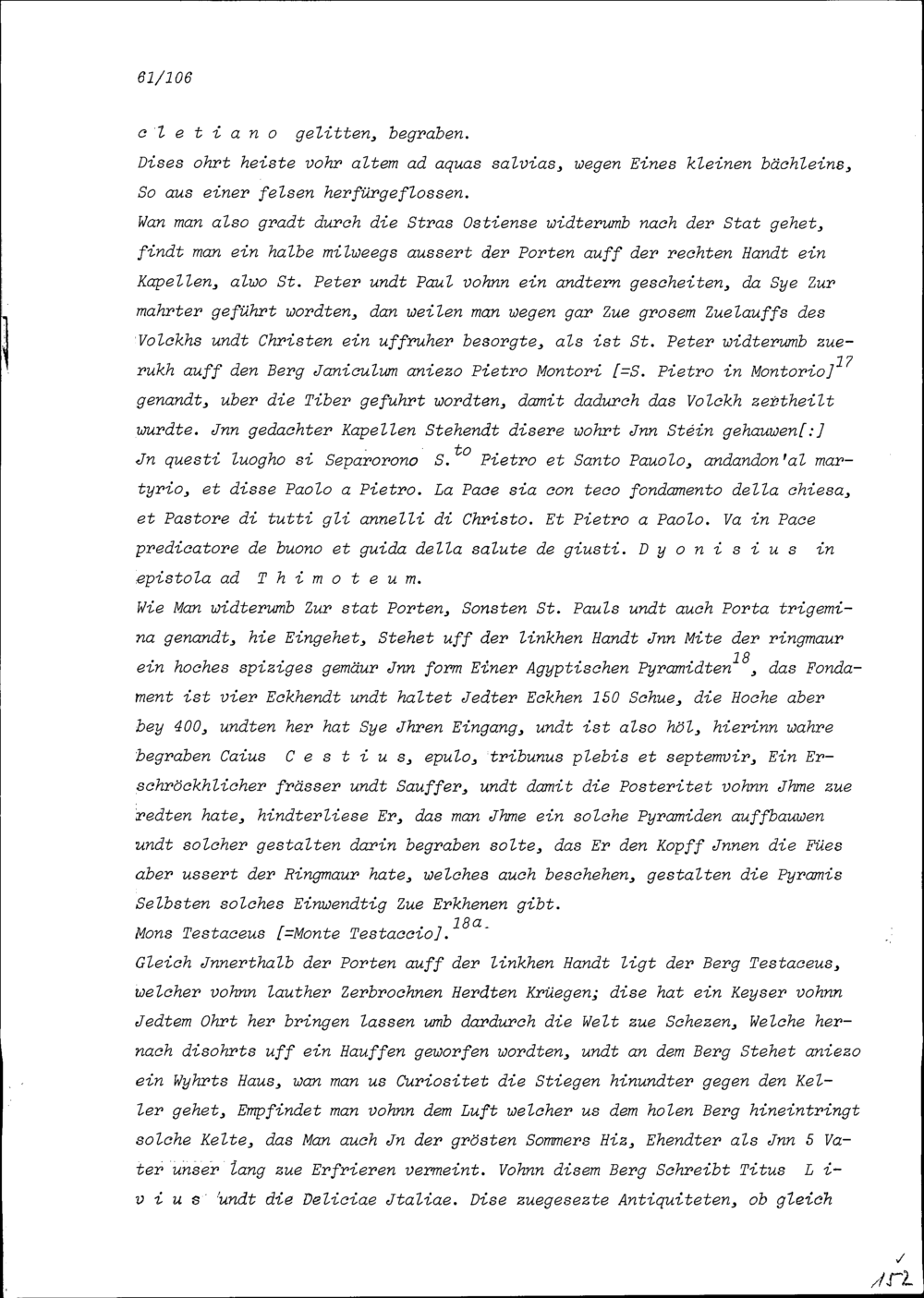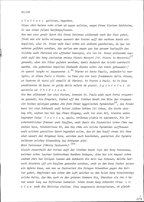 Beschreibung von Beat Kaspar Zurlauben über die anlässlich seiner Romreise besuchten...