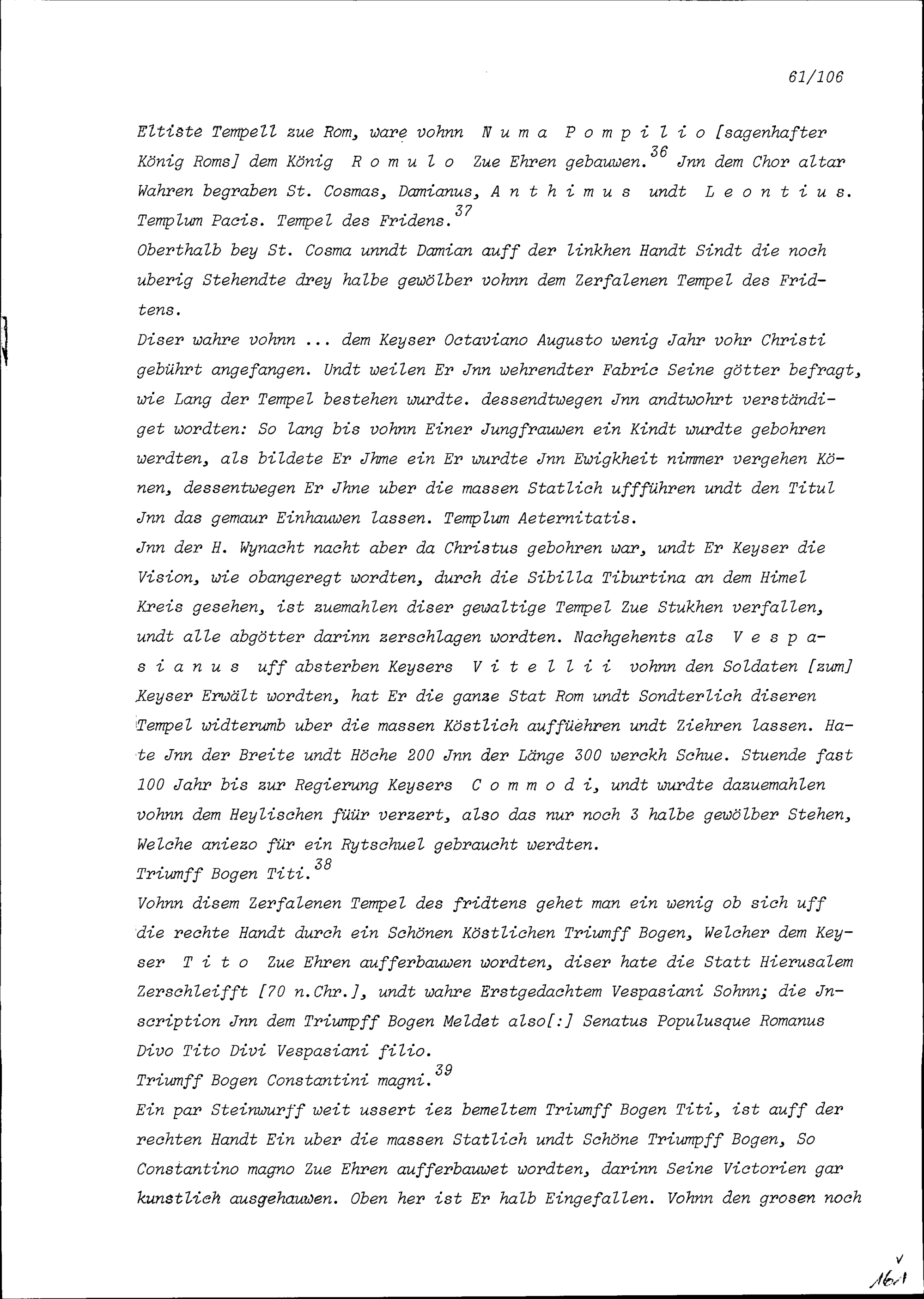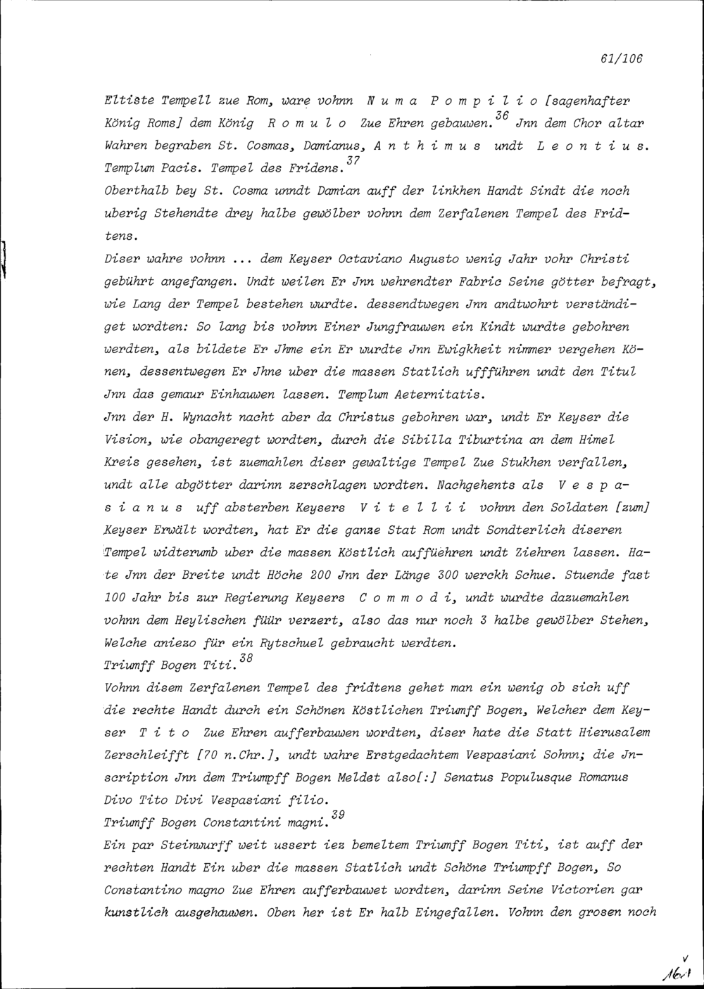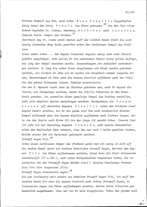 Beschreibung von Beat Kaspar Zurlauben über die anlässlich seiner Romreise besuchten Kirchen und andern Sehenswürdigkeiten