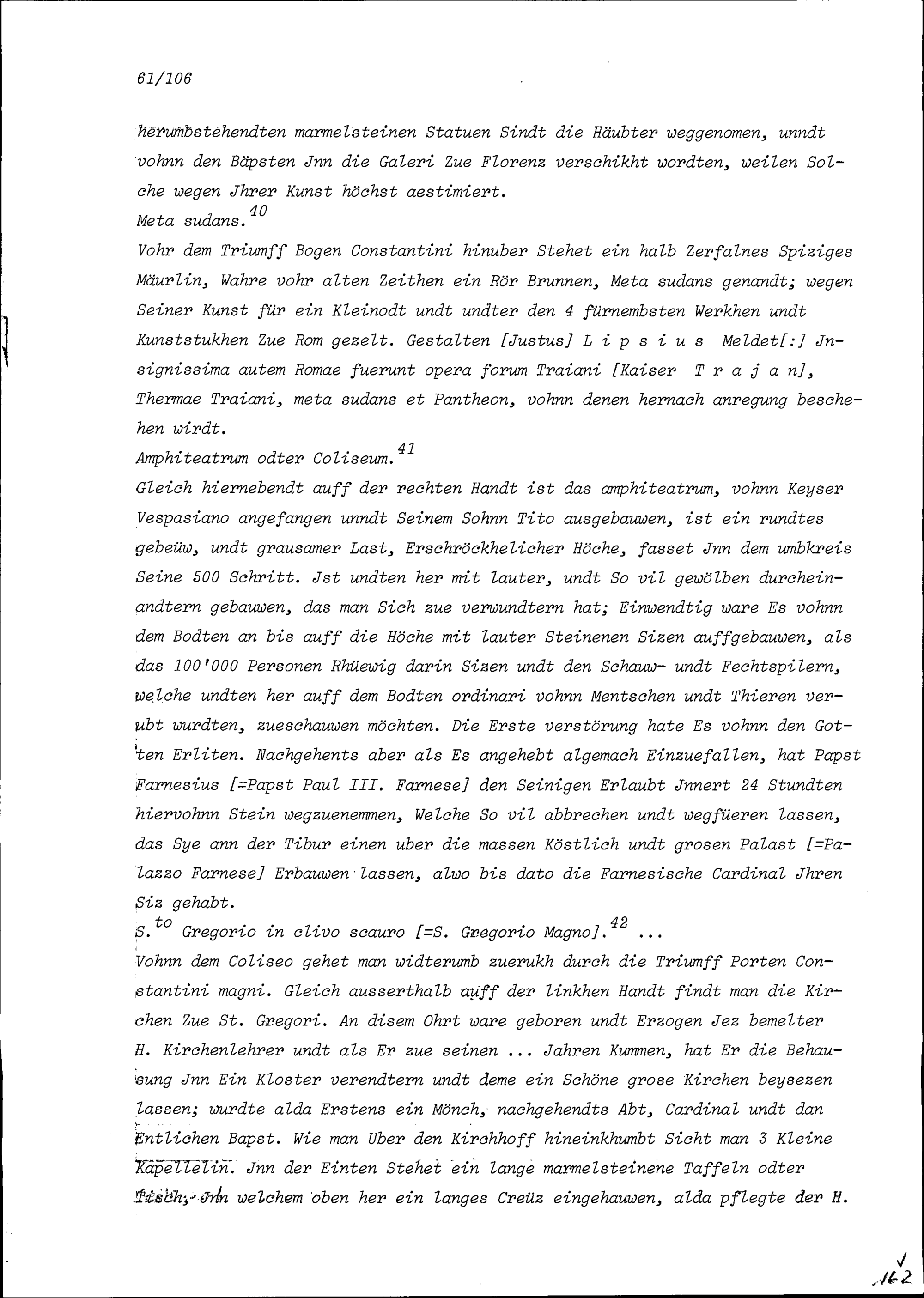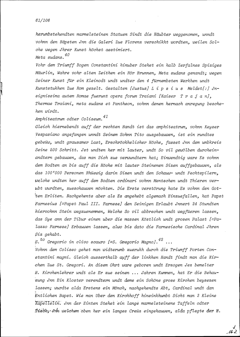 Beschreibung von Beat Kaspar Zurlauben über die anlässlich seiner Romreise besuchten Kirchen und andern Sehenswürdigkeiten