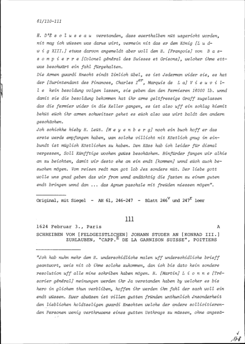 Schreiben von Johann Studer, Feldgeistlicher, an Konrad III. Zurlauben, Poitiers