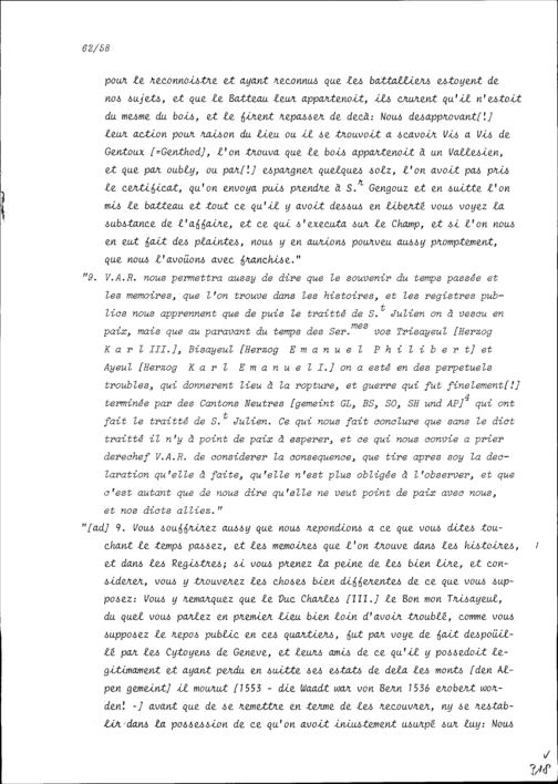 Klagen beziehungsweise Gegenklagen von Zürich und Bern, den verbündeten Genfs, einerseits und von Savoyen anderseits