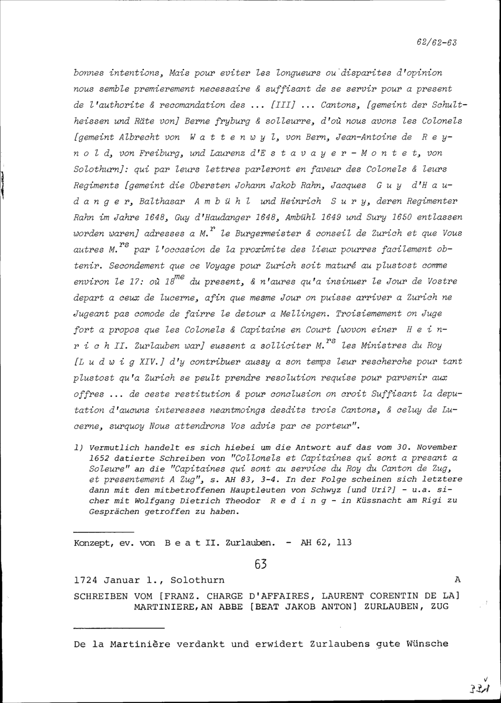 Schreiben von Laurent Corentin de la Martinière, französischer Geschäftsträger (Charge d'affaires), an Beat Jakob Anton Zurlauben, Priester, Zug