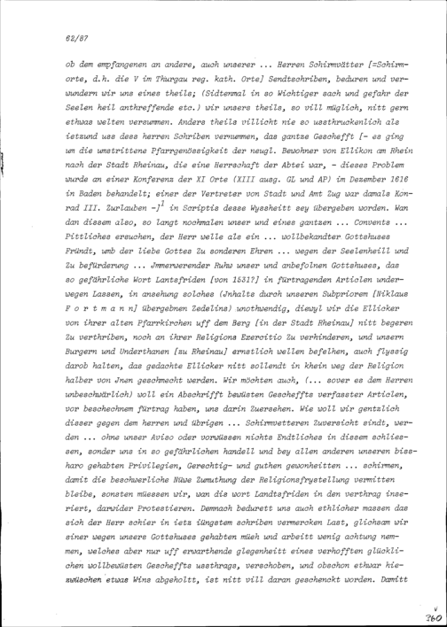 Schreiben von Eberhard III. von Bernhausen, Abt von Rheinau, an Konrad III. Zurlauben, Altammann und Stadt- und Amtrat, Zug