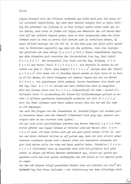 Schreiben von Konrad III. Zurlauben, Gardehauptmann, an Beat II. Zurlauben