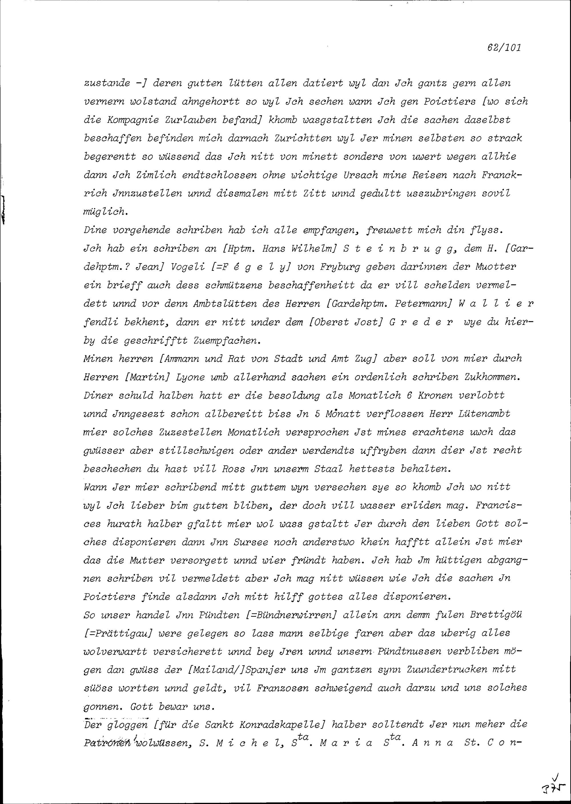Schreiben von Konrad III. Zurlauben, Gardehauptmann, an Beat II. Zurlauben
