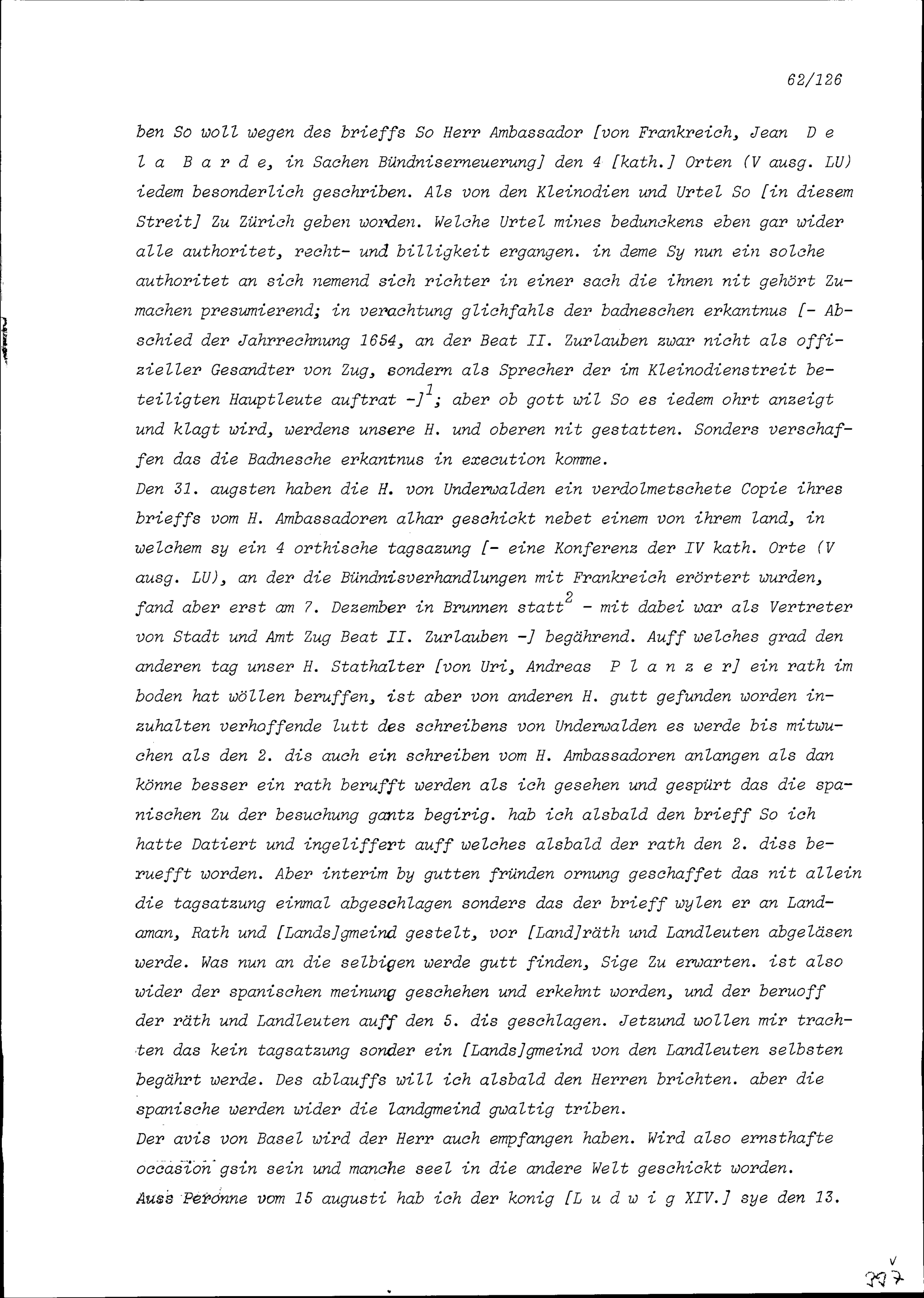 Schreiben von Johann Jakob Stricker, Gardehauptmann, an Beat II. Zurlauben, Hauptmann...