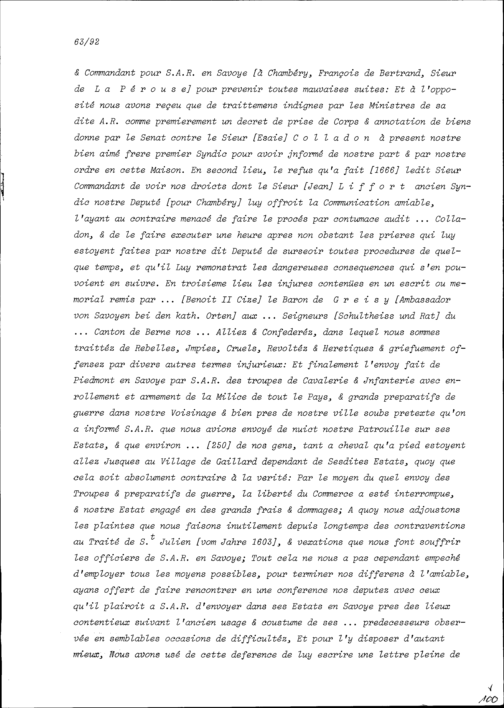 Schreiben des Syndics und Rats der Stadt Genf an Bürgermeister, Schultheissen, Landammänner und Räte der Dreizehn Orte