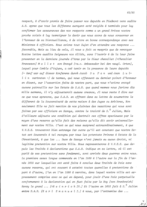 Schreiben des Syndics und Rats der Stadt Genf an Bürgermeister, Schultheissen, Landammänner und Räte der Dreizehn Orte
