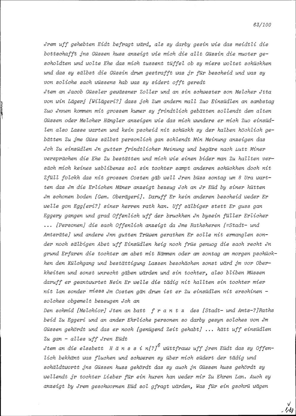 Kundschaftsaussagen von Walter Zeffel von Uri in Zusammenhang mit seinem Ehestreit...