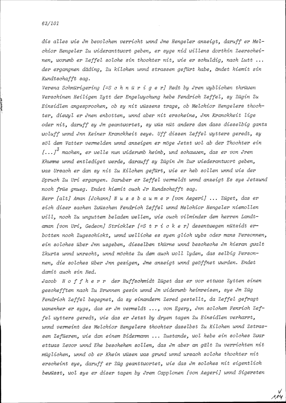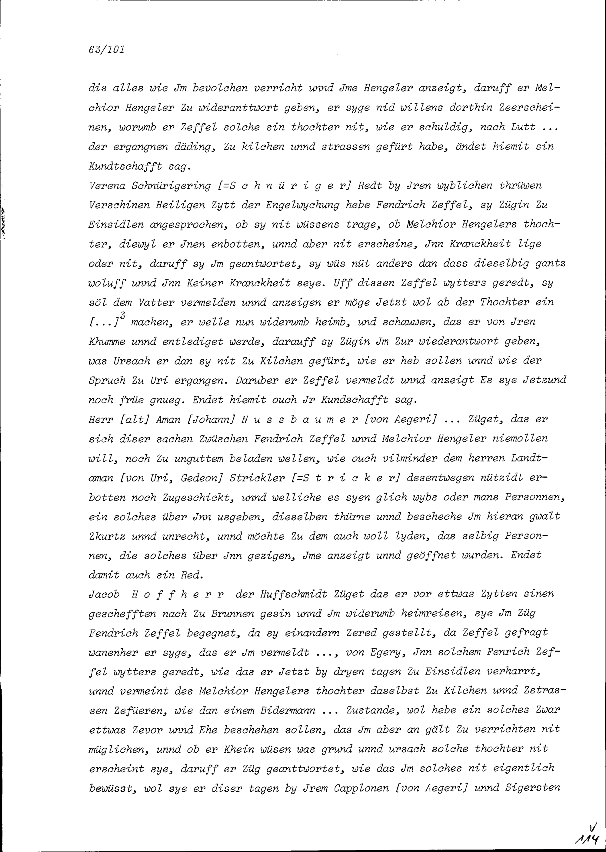 Kundschaftsaufnahmen im Ehestreit zwischen Walter Zeffel, Fähnrich, von Uri einerseits und Ottilia Henggeler von Ägeri anderseits