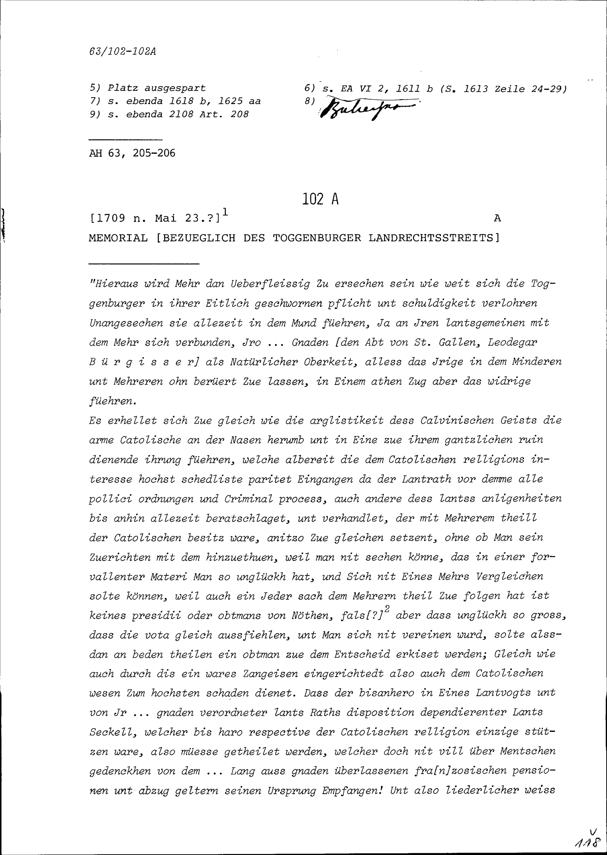 Bericht betreffend den Toggenburger Landrechtsstreits