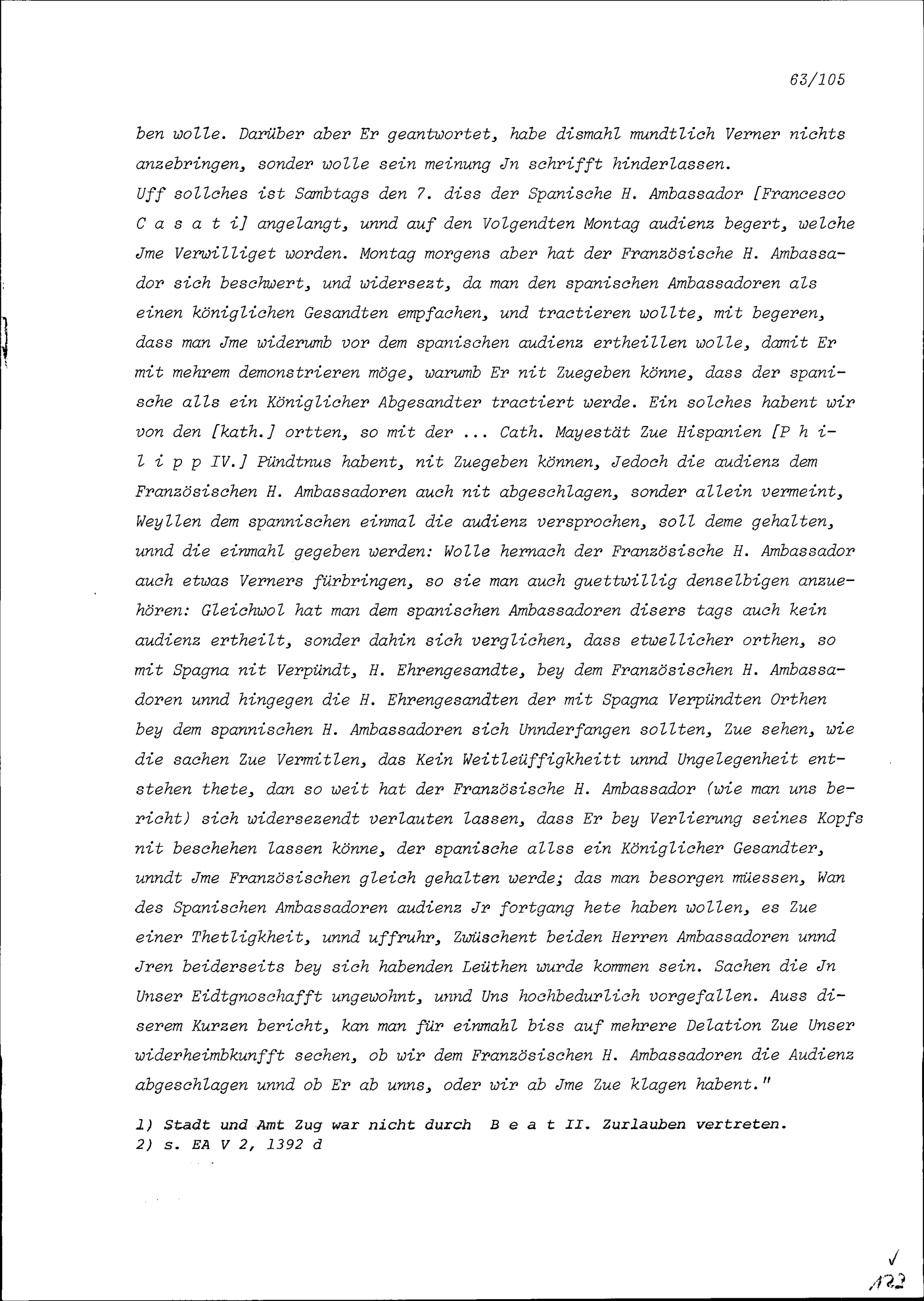 Schreiben der Tagsatzungsgesandten der Sechs Katholischen Orte an Schultheiss und...