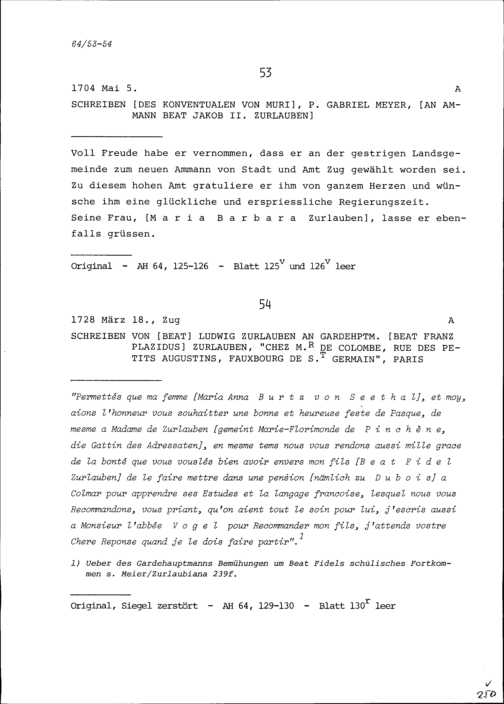 Schreiben von Gabriel Meyer, Konventuale von Muri, an Beat Jakob II. Zurlauben, ...